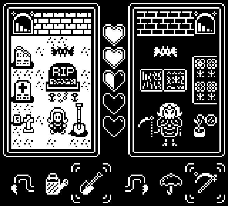 This started as a game concept inspired by torcado's Rat King where you'd simultaneously control two characters. Originally envisioned as a dungeon crawler, my limits got the best of me and I converted it into a farming sim at the last minute.